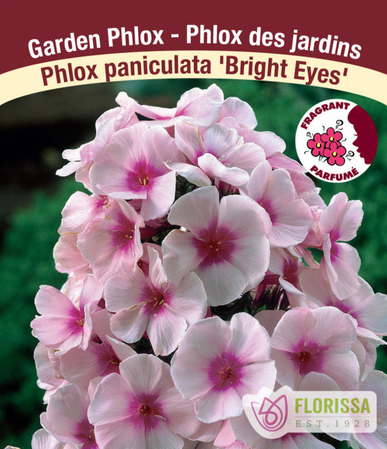 A timeless classic among garden phlox, Phlox paniculata ‘Bright Eyes’ dazzles with clusters of soft pink flowers spotlighted by dramatic magenta-red centers. Its rich vanilla-clove fragrance and reliable mildew resistance make it a standout performer in sunny summer borders and cutting gardens.