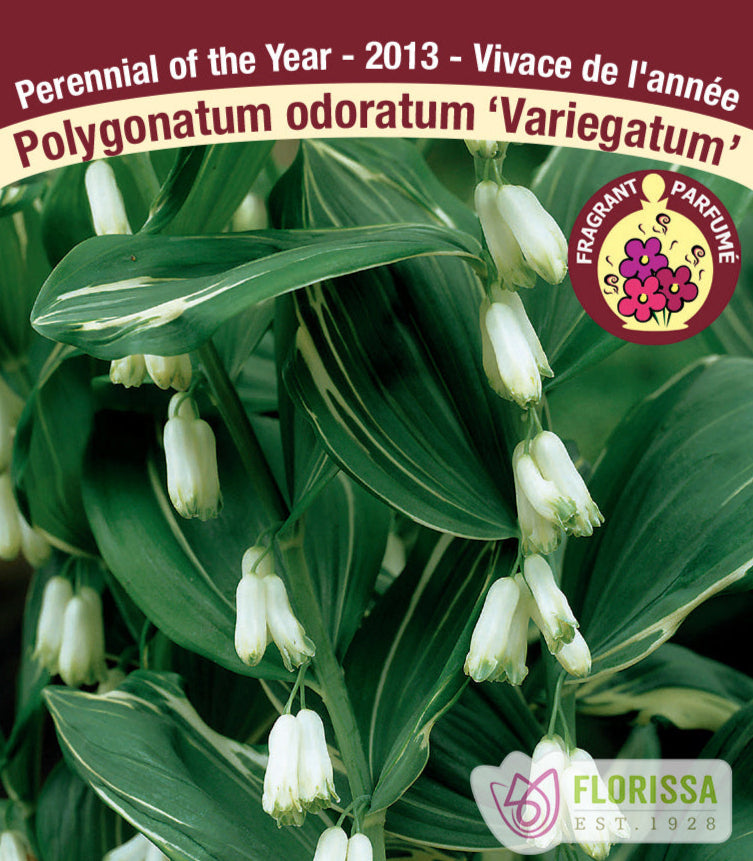 A refined woodland perennial, Variegated Solomon’s Seal enchants with its graceful arching stems draped in green leaves edged with creamy-white margins. In late spring to early summer, delicate bell-shaped, creamy-white flowers with green tips nod beneath the foliage, followed by deep blue-black berries that add visual interest into fall. This cultivar boasts seasonal beauty and effortless charm—perfect for shade gardens, groundcovering, and woodland borders.