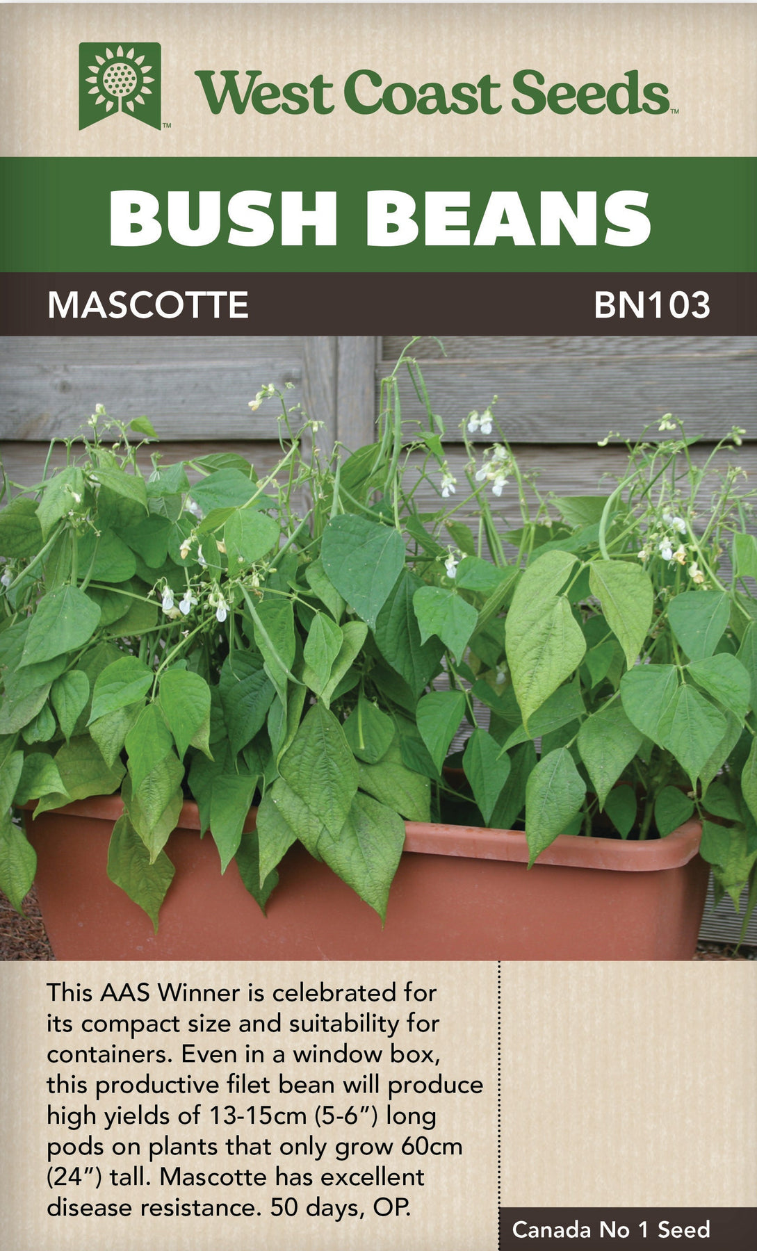 This AAS Winner is celebrated for its compact size and suitability for container growing. Even in a window box, this French filet bean will produce high yields of 13-15cm (5-6”) long pods that have excellent flavour and a crunchy texture. Mascotte bush bean seeds produce plants that are highly resistant to BCMV, Anthracnose, and halo blight.