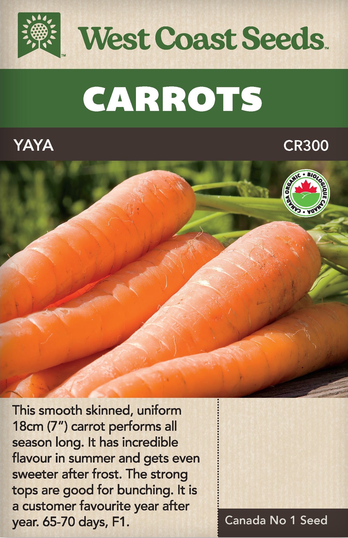 CERTIFIED ORGANIC! Yaya is a smooth skinned, uniform 18cm (7") Nantes type that performs all season long. Incredible flavour in summer that gets even sweeter after frost. This is a customer favourite year after year!