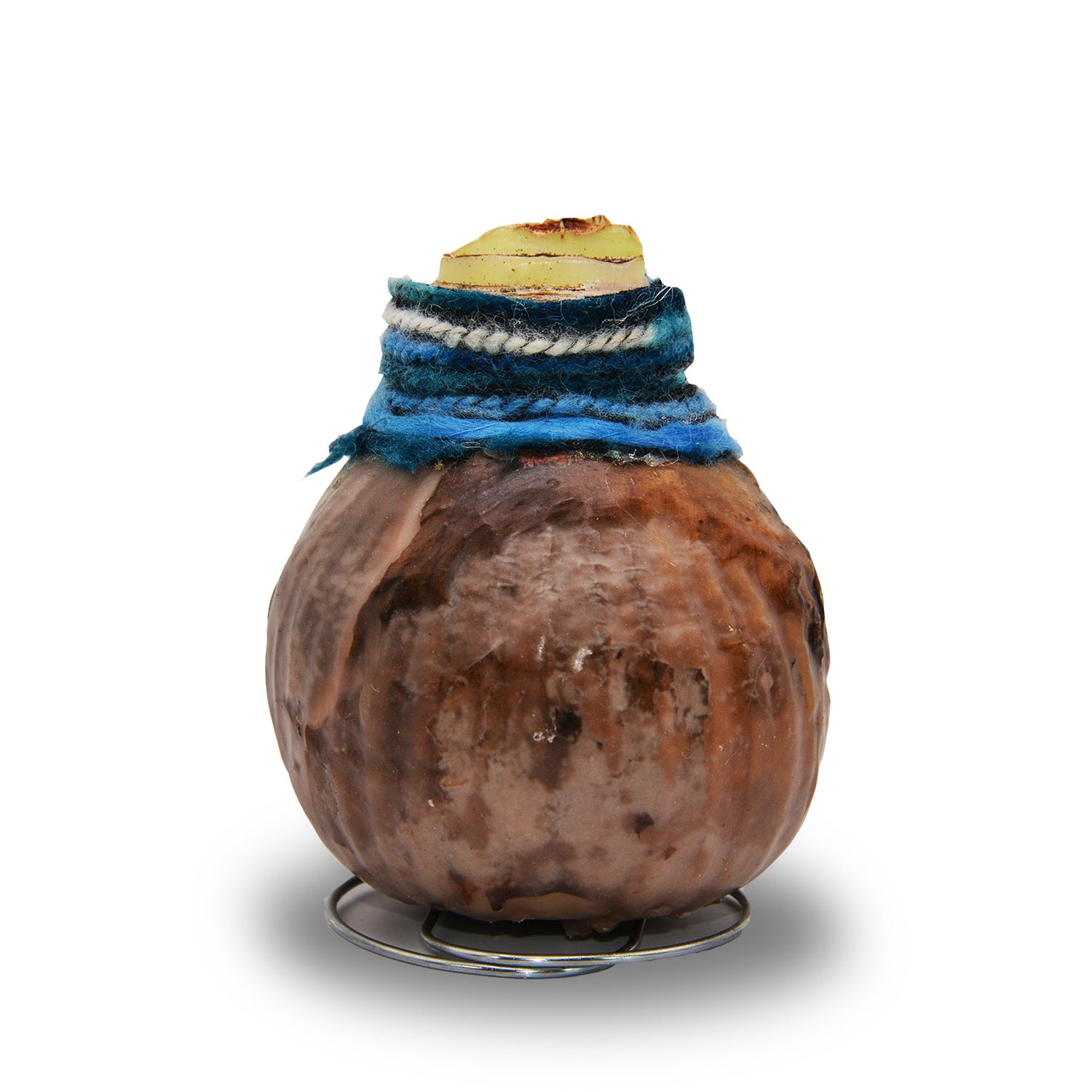 Bring an earthy, handcrafted aesthetic to your indoor blooms with this Boho Chic Natural wax‑coated Amaryllis. The decorative bulb, wrapped in blue, multi-coloured, and earth toned wool, accents the wax finish and sets the stage for bold, trumpet‑shaped flowers and a striking stem display. Simply place it on a flat surface in bright, indirect light—no planting, soil, or watering required—and watch the flower stalk emerge within a few weeks. Perfect for modern décor with a warm, textured twist, this variant blends bohemian charm with the effortless elegance of the classic amaryllis bloom.