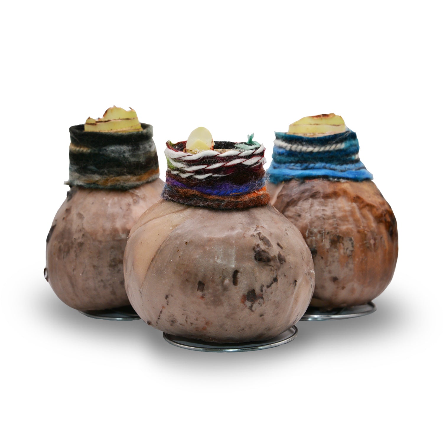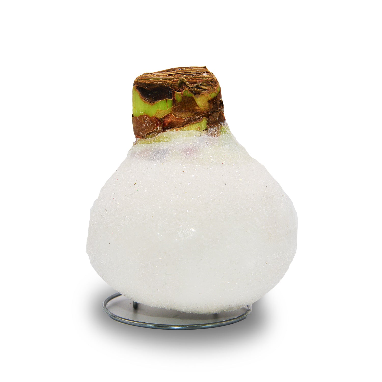 Add an elegant and seasonal touch to your home with these beautifully crafted waxed amaryllis bulbs. Each bulb is dipped in a glossy wax coating and dusted with sugar-like flakes for an effortless display—no potting, planting, or watering required. Place the bulb in a bright indoor spot and watch as a tall stem rises, culminating in large, vivid red trumpet‑shaped blooms that captivate and brighten cold weather days. With its minimal upkeep and maximum impact, this wrapping is perfect for gifting or personal décor.