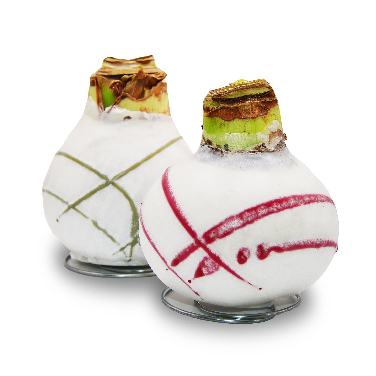 These novelty wax dipped bulbs are to be enjoyed during the winter. The pin stand holds the bulb upright under the weight of the blooms. Enjoy 2-3 stems of blooms.