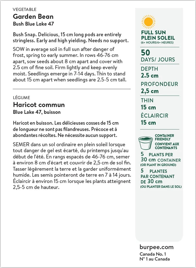 CERTIFIED ORGANIC! No strings. This Burpee-bred favorite is crisp, meaty, juicy, and super-flavorful. A culinary star, pods are delicious in pesto, sautéed with garlic, braised, or steamed. A classic stringless heirloom of exceptional flavor. Plant yields are early and robust. Slightly curved, round pods are about 6" long. Plants are entirely self-supporting.