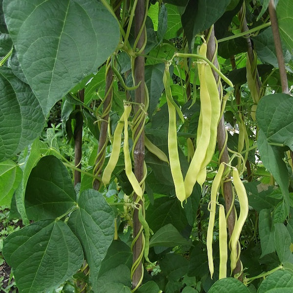 This classic Pole Bean was used extensively by the Royal City Cannery of New Westminster BC. In production from 1912 until the plant closed in 1930. Thanks to the efforts of Shirley Bellows from Seeds of Diversity, a relative of the owner’s family sent this bean to her to preserve. Give this prolific producer a good tall fence as it can get huge, easily 8 to 10 feet tall. The 10 inch long pods are delicious and tender.