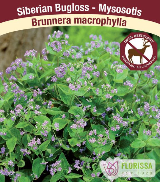 The graceful perennial Brunnera (commonly called Siberian bugloss) features lush, heart-shaped leaves that form deep mounds in shady garden corners, paired in spring with sprays of tiny, sky-blue “forget-me-not” style flowers. This woodland-native perennial thrives in Canadian conditions when planted in moist, rich, well-drained soil and placed in part-shade to full-shade for best performance. Variegated cultivars add added interest with silver or creamy leaf overlays, while all forms are remarkably low-maintenance once established and are often ignored by deer. Explore our Wildwood Express collection to discover just the right Brunnera variety to bring texture and long-season charm into your garden.