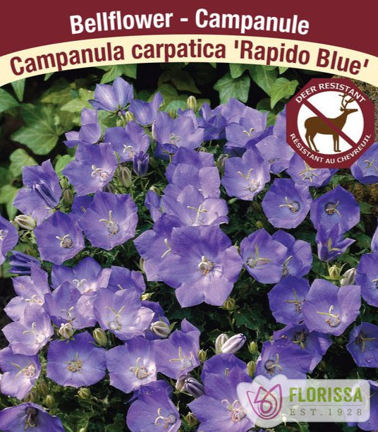 A refined, neat cushion of dark green foliage, Campanula carpatica 'Rapido White' bursts into a cloud of pure white, cup-shaped bell flowers. Standing just 5–7″ (13–18 cm) tall and spreading about 5–8″ (13–20 cm), it's an ideal choice for rock gardens, edging, and containers. As one of the earliest in the Rapido series, it blooms up to four weeks ahead of older cultivars and reblooms through summer with regular deadheading. This vigorous, deer-resistant perennial attracts bees and hummingbirds, thriving in sun to part shade with minimal care.