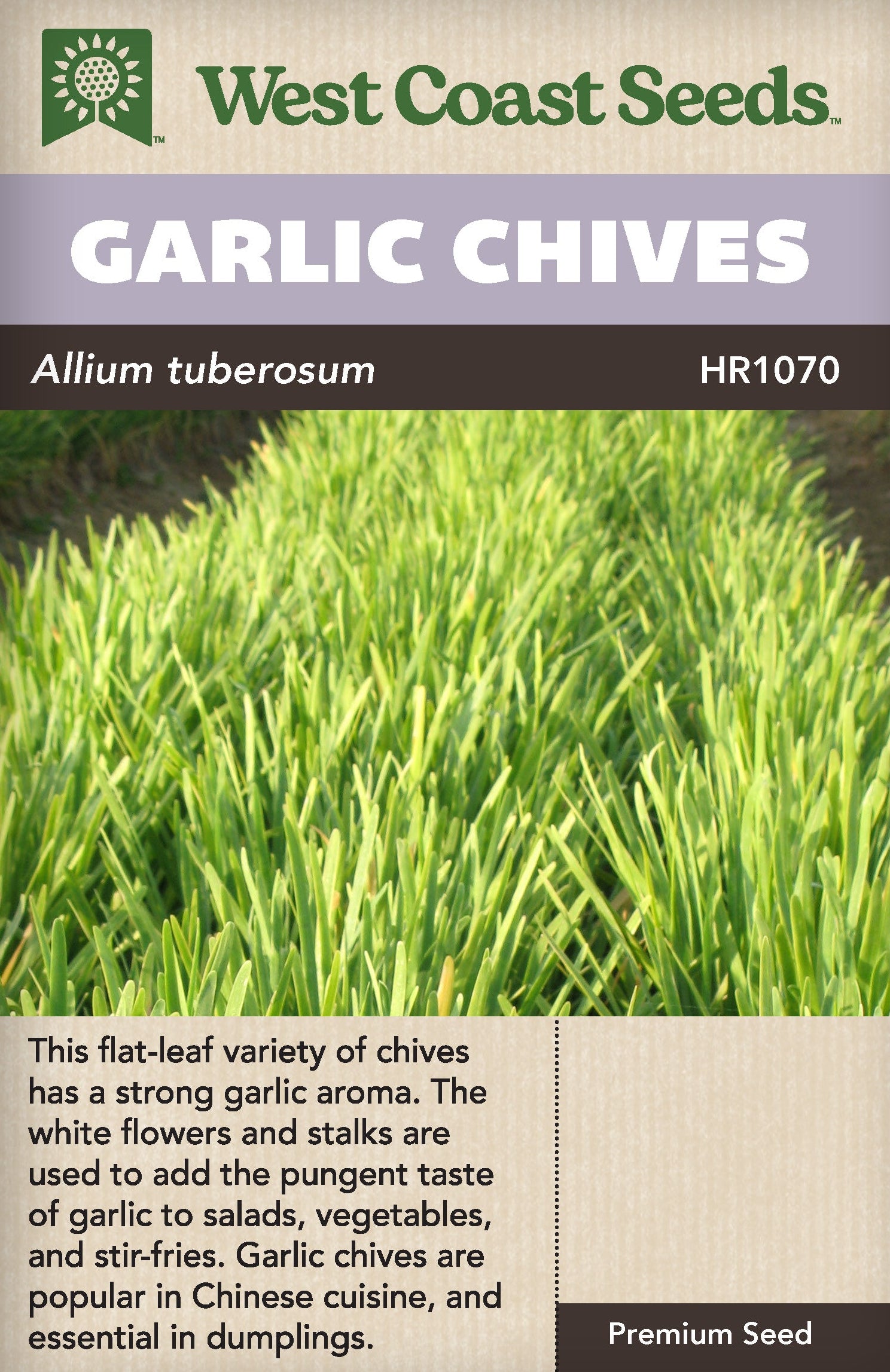 Garlic Chives grow grass-like leaves with a mild garlic taste. To best retain flavor, dry harvested leaves quickly. Chopped leaves can also be frozen for later use.