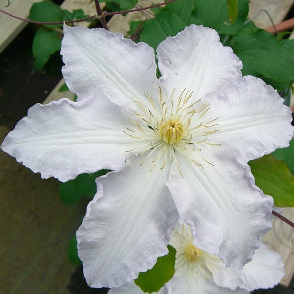 A popular introduction from Holland. This variety produces spectacular fully double flowers or unique single flowers with over sized stamens much like C. florida. 4-6" (10-15cm) blooms from June to September. Mature height 6-9' (2-3m). Pruning group B2.