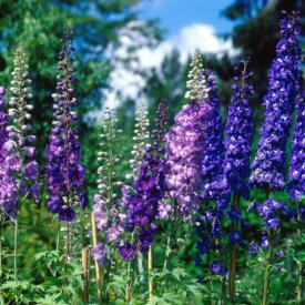 Step back and admire your truly royal row of beauty! The pacific Giants Delphinium is one the most loved perennials. Stunning, tall spires of elegant flowers in pastel pink, lavender, white, and blue form a row of exquisite color. Zone 2-9