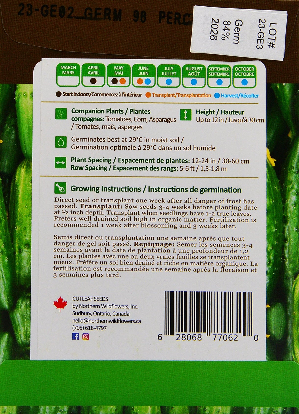 8-9” fruits, slender, dark green cucumbers. Standard for slicing cucumbers in the North. Seed from a small organic farm in British Columbia.