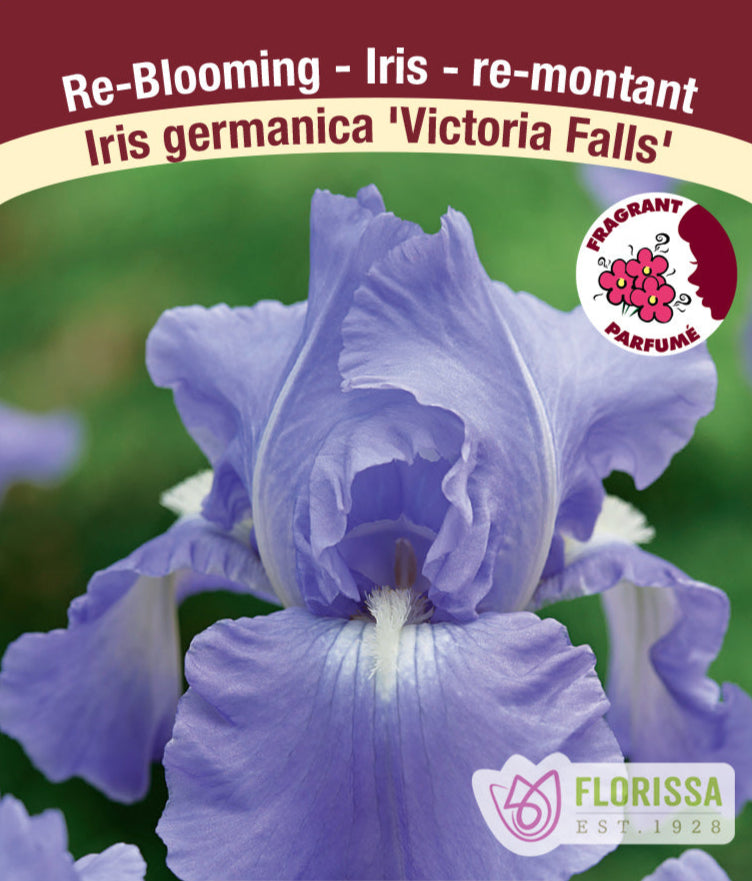 A majestic tall-bearded iris producing generous clusters of soft light‑blue blooms beautifully ruffled around a crisp white throat and matching white beards. Each stalk, branching into three main stems and two side spurs, can carry up to 14 flowers for a spectacular display. Highly fragrant, it reliably reblooms in many climates from late summer into early fall, adding dual-season interest. Deer‑ and rabbit‑resistant, vigorous, and low‑maintenance, this award-winning variety thrives in full sun with well-drained soil and naturalizes gracefully over time