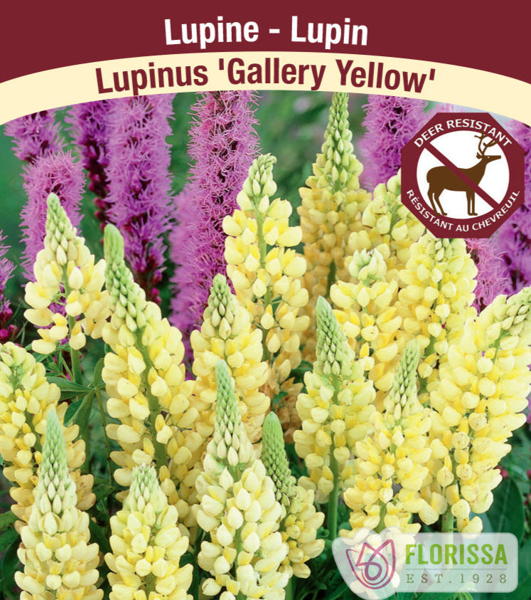 Lupinus ‘Gallery Mix’ is a stunning compact lupine hybrid famed for its vibrant, multicolored flower spikes—think shades of red, pink, yellow, blue, white, and indigo—all blooming atop lush, palmate foliage. Standing around 18–24 in tall with a spread of 12–18 in, this mix brings early- to mid-summer color to gardens, borders, and containers. It attracts hummingbirds, butterflies, and bees, while offering the added benefits of deer resistance and ease of care. Truly a picturesque, pollinator-friendly choice for small spaces and cutting gardens.