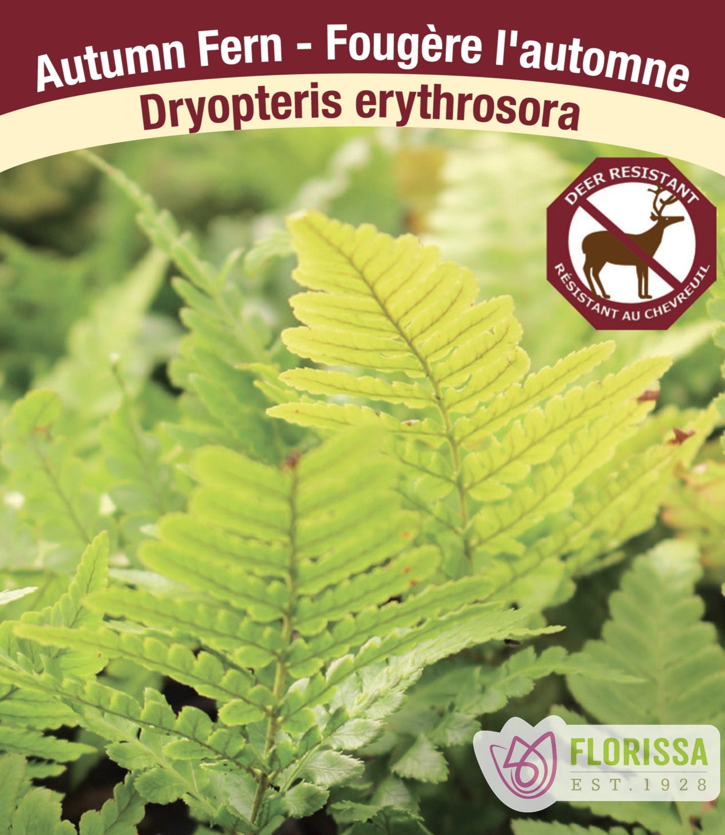 An alluring Autumn Fern, Dryopteris erythrosora ‘Brilliance’ dazzles with bright coppery-red new fronds that mature to glossy green, often re-emerging in warm tones again in fall—providing year-round color. This semi-evergreen fern forms a graceful, vase-shaped mound approximately 18–30 in (45–75 cm) tall and wide, ideal for woodland gardens, containers, or shaded borders. Exceptionally hardy and low-maintenance, it thrives in moist, humus-rich, well-drained soil under part to full shade, tolerates light sun and brief dry periods once established. Resistant to deer and rabbits, and earns accolades like the RHS Award of Garden Merit, it adds vibrant texture and structure to shady landscapes.