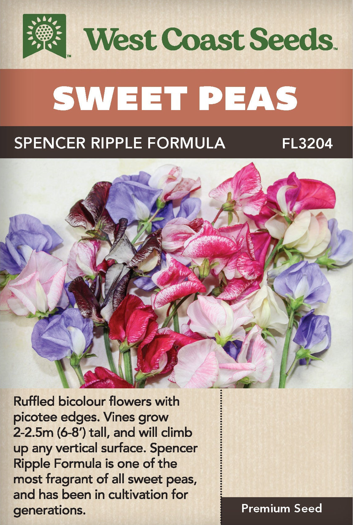 Gardener's Notes: Sweet peas love cool weather and need to grown before summer's heat. Plant in rich soil in early spring. To speed germination, soak seeds in warm water for 12-24 hours. Seeds can be started indoors 4-6 weeks before planting outside, or sow outdoors as soon as oil can be worked. In warm climates, plant in fall or late winter and early spring bloom. Provide trellis or support vines to climb.