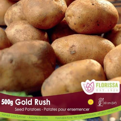 Bring top‑tier baking and baking‑style potatoes to your garden with the variety Gold Rush (sometimes spelled “Goldrush”). This russet‑type cultivar delivers long, well‑shaped tubers with heavily russeted skin and clean white to pale flesh. It is a high‑yielding, disease‑resistant variety developed for strong performance and excellent baking and frying quality. In your Canadian home garden, it’s an excellent choice for big harvests of classic baking‑style potatoes with smooth texture and good keeping ability.