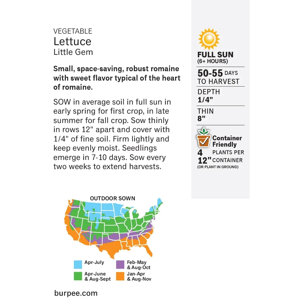 The small, robust green heads are perfect for individual salads, and its firm upright habit makes it great for sandwiches as well. An heirloom all-star, Little Gem is the one to grow for Hearts of Romaine.