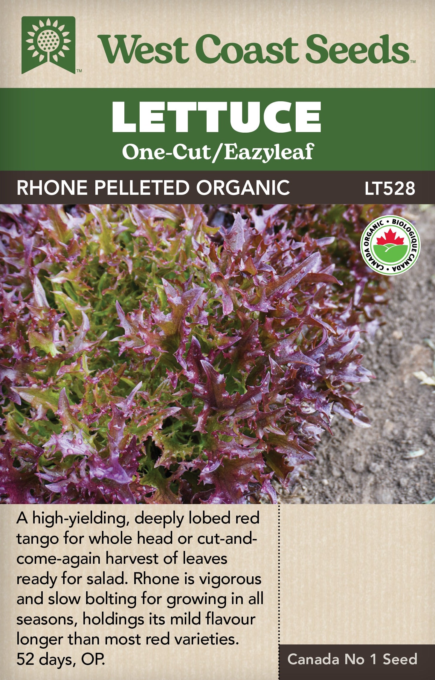 CERTIFIED ORGANIC! This high-yielding, deeply lobed green tango lettuce is a standout for its incredible uniformity, fast growth, and high quality in all seasons. Ezpark Eazyleaf can be grown for whole head or cut-and-come-again harvest of crisp, yet tender, leaves ready for salads. Grow together with the red tango Rhone and any of the other Eazyleaf varieties for a complement of colours and leaf shapes, creating an easy salad with one cut. High resistance to Downy Mildew, Lettuce Leaf Aphid (Nasonovia ribisnigri), and Intermediate resistance to Lettuce Mosaic Virus.