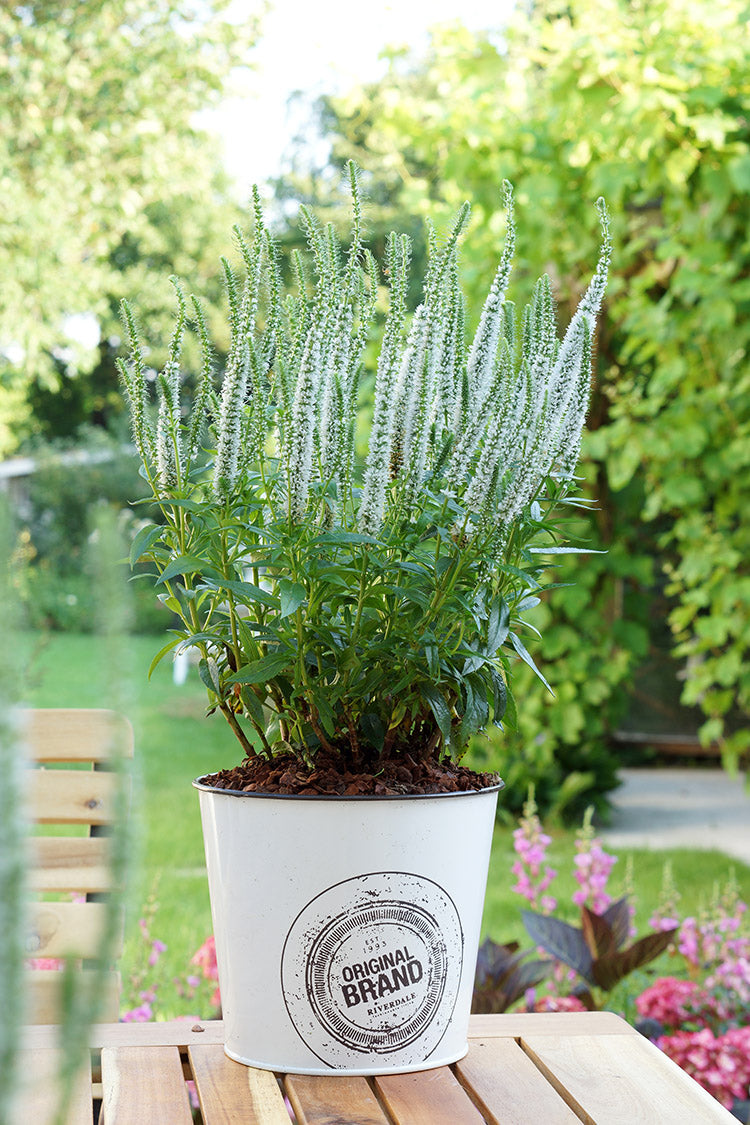 A compact and cheerful cultivar, Veronica spicata ‘Snow Candles’ forms a neat mound of deep green, lance-shaped foliage topped with pure white, candle-like flower spikes from early summer through late season. Growing to approximately 8–10″ tall and wide, it brings fresh brightness to borders, rock gardens, or containers. Exceptionally low-maintenance and disease-resistant, this variety tolerates full sun to light shade and consistently moist, well-drained soils. Wildlife-friendly and resilient, it attracts butterflies and hummingbirds while being resistant to deer, rabbits, and salt.