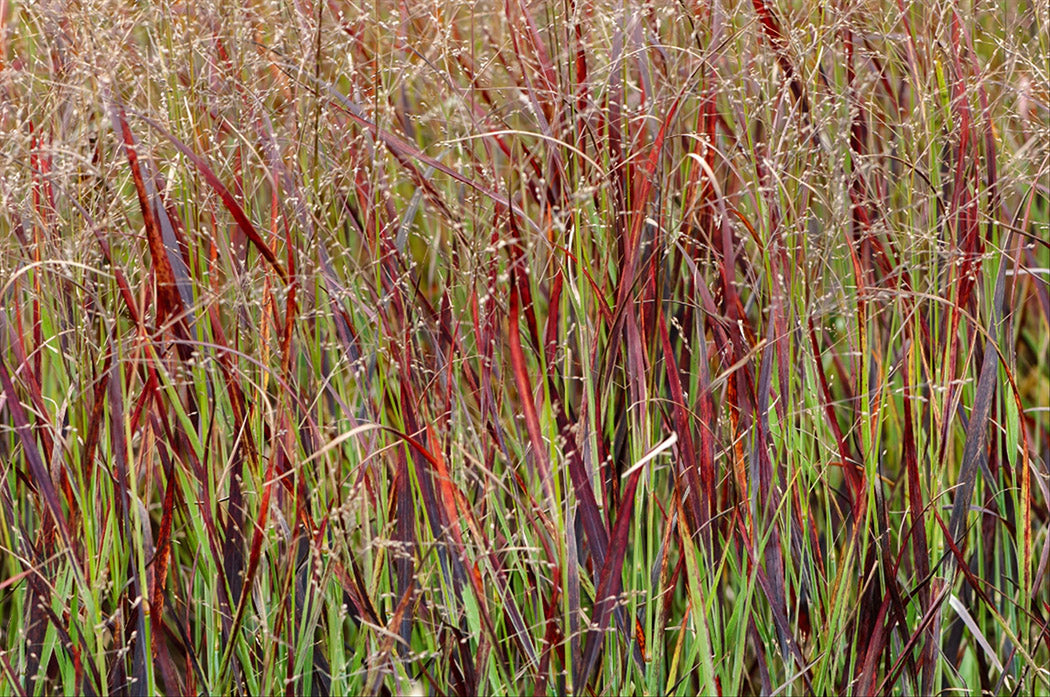 A striking Canadian selection of switchgrass, ‘Blood Brothers’ begins the season with upright, blue‐green foliage that transitions to vivid blood-red tips by midsummer, deepening steadily into fall. Small reddish flower panicles emerge in late summer, maturing to tan seedheads that remain attractive into winter. The vigorous, slightly vase-shaped clump reaches about 120–150 cm in height with a span of 75–90 cm, maintaining strong vertical structure well into the dormant season. Hardy in Zones 4–9, drought-tolerant and deer-resistant once established, it’s ideal for sunny borders, prairie-style plantings, containers or as a colorful accent.